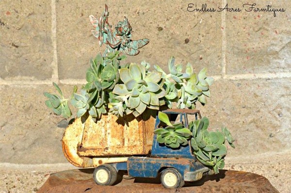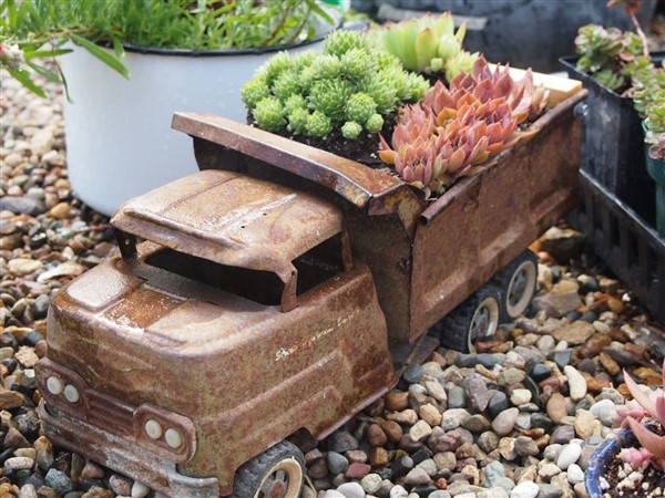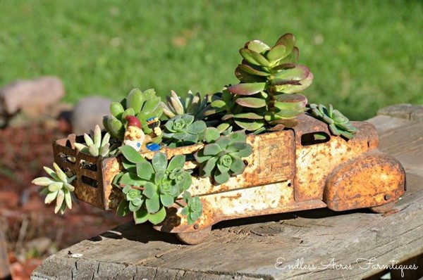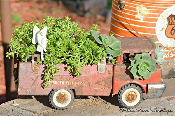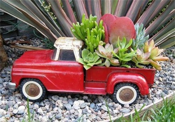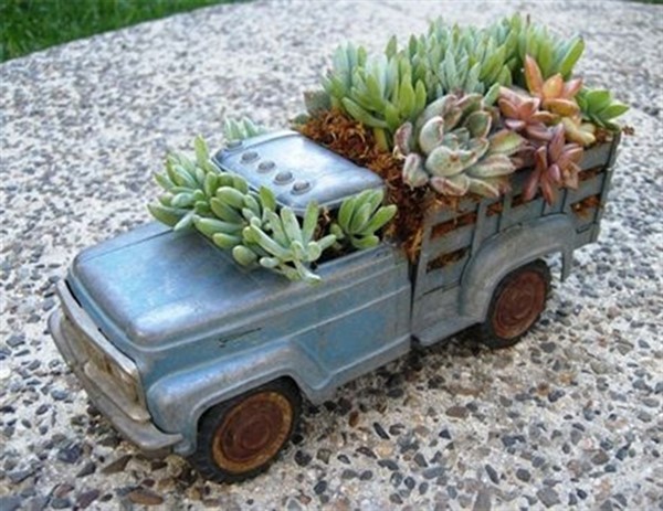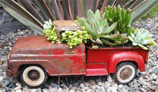If you collect these materials, you can create your vintage truck planter. Firstly, you can make small holes in where you will put potting soils and add some small amount of stones with some charcoals for drainage. Then, you can put your potting soils and wisely chosen plants. For example, succulent and limelight Japanese Stonecrop are very suitable for your new planter. Now, your vintage toy truck planter is ready and you can locate your new planter wherever you want.