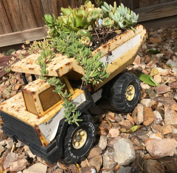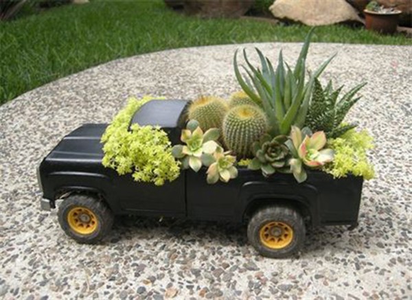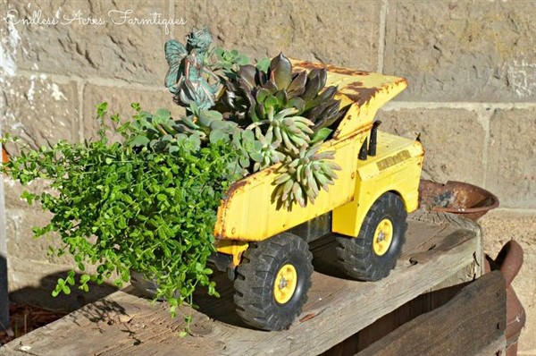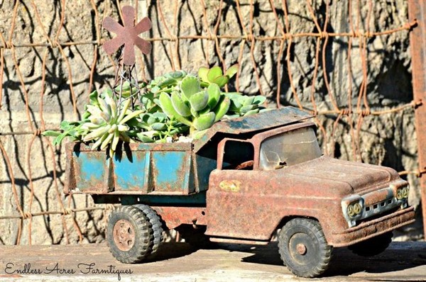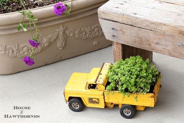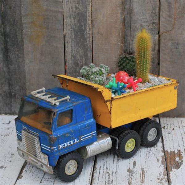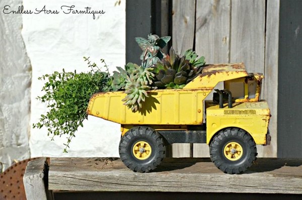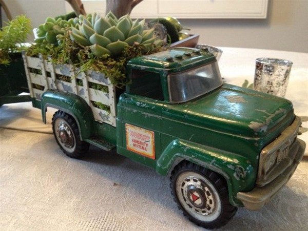 Recently, there are many different planter ideas about turning old or broken materials into new decorative ones for a new purpose such as beautiful planters for your balcony or garden. In this sense, the vintage toy truck of your child is one of most lovely ones for this purpose.