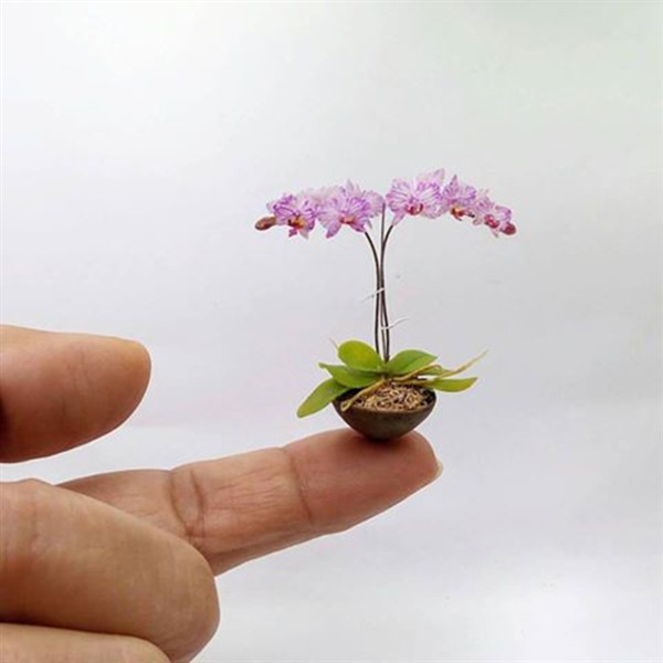 As seen in pictures, they consist of tiny planters, tiny plants, and a less but sufficient amount of soil. Generally, their length could reach up to 2 inches (5 cm). Specifically, plants with erected flowers make tall a little bit. Also, arching leaves show a Miniature Orchid Planter little large. But generally, most of the leaves are tiny.