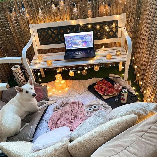 2) Place mini coffee tables on balcony cinema to put snacks!
