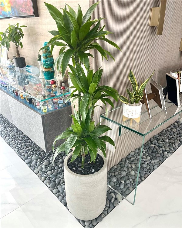 Corn plant generally has a flat, broad, pointy tip, bright variegated green foliage, and thick woody separated and looking upward stems. The large leaves are arching-look due to their weight whereas the small ones are more erected. Also, such plants are evergreen just like Chinese Evergreen. It grows slow due to its perennial plant characteristic. According to its long-term care, it can become a shrub or tree. It blooms white and yellow in summer. However, it does not flower under indoor conditions in general. Above all, it gives red and orange fruits. When it comes to its height, it grows up to 50 ft (15 m) in nature. On the other hand, it becomes at most 7 ft (2 m) under indoor conditions. As a caution, it is nearly as harmful as Madagascar Dragon Tree for pets (dogs & cats).