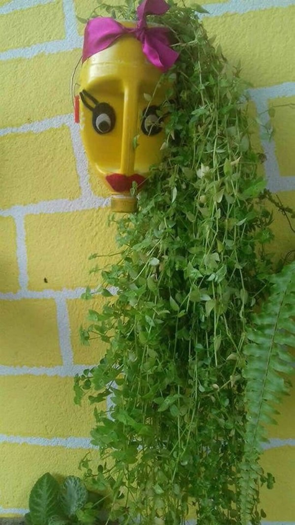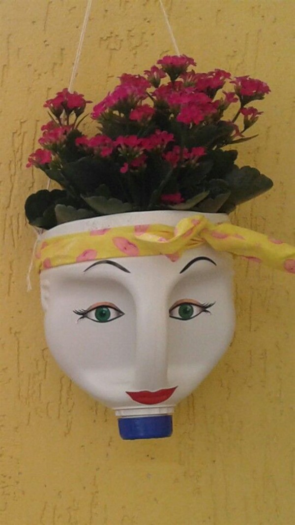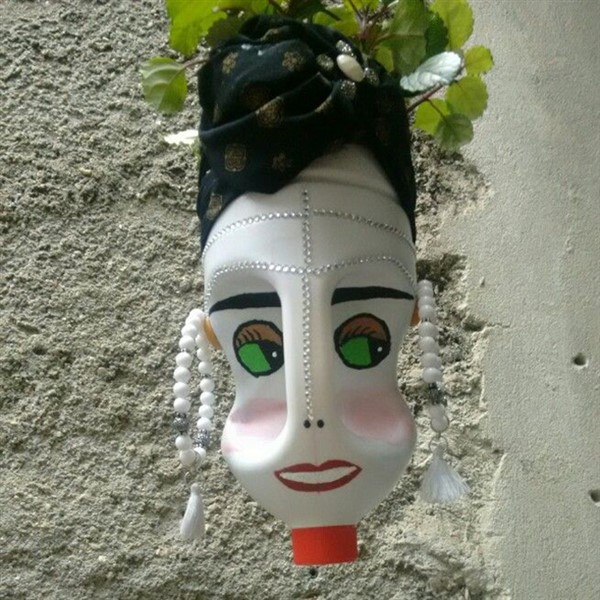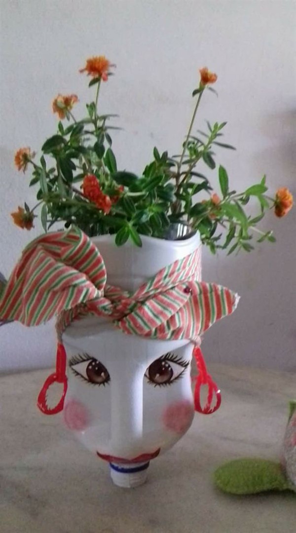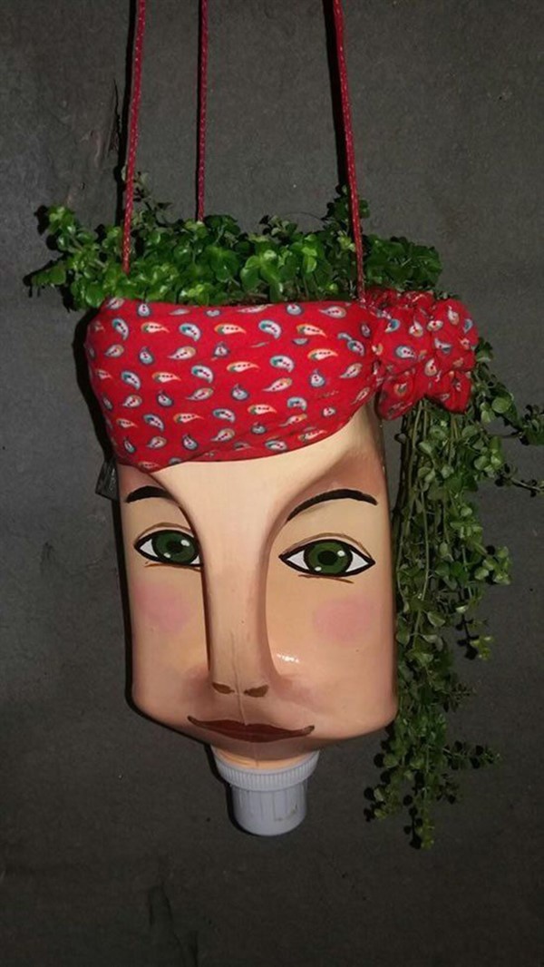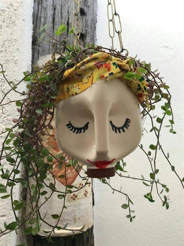 - Furthermore, you can use colorful fabrics, kerchiefs, or bandanas to cover the head of the milk bottle planter.