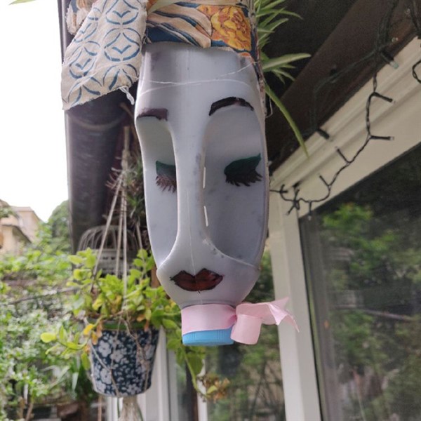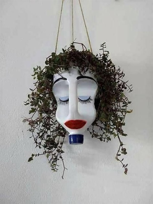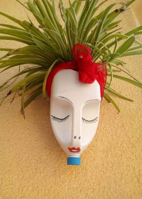 - Then, you can draw eyes and lips with different patterns and motifs. In this regard, using durable markers will make your bottle planters’ face resistant for outdoor places. Also, you can use stickers to make eyes and lips.
