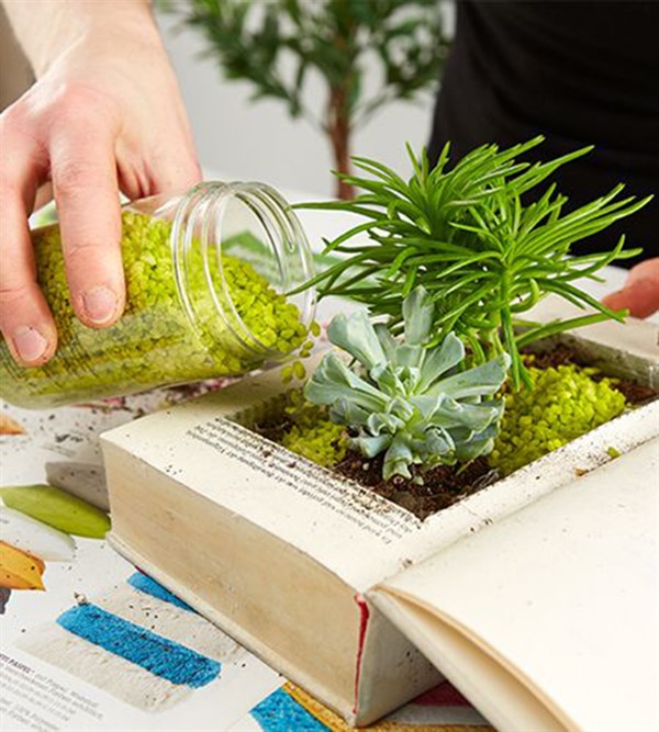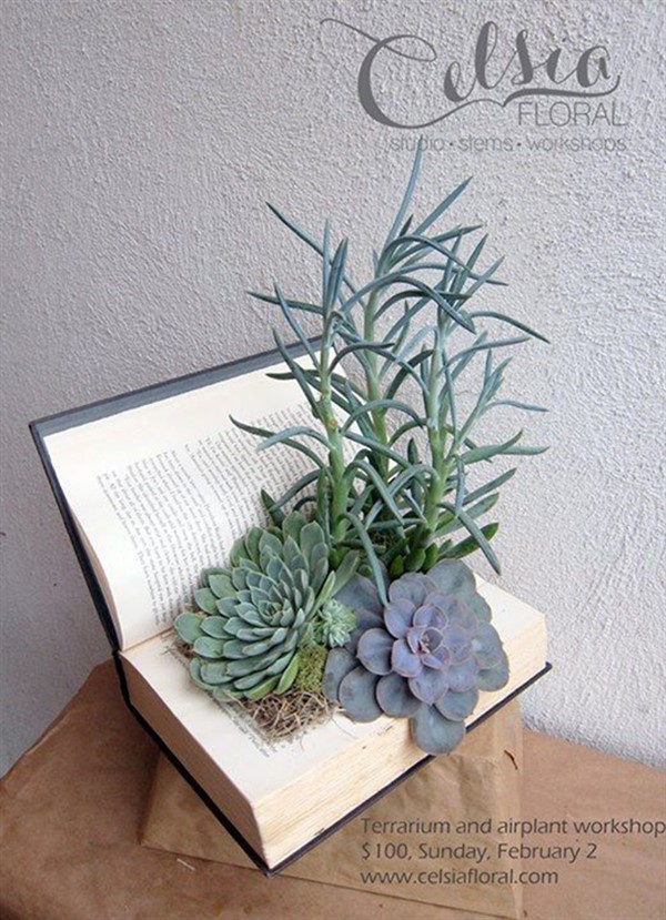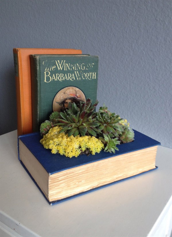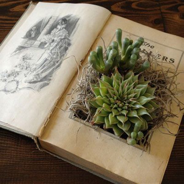 Planting in vintage book is an option that we are going to show some explain below. Of course, you can do it yourself other vintage or new-brand thing if you wish.