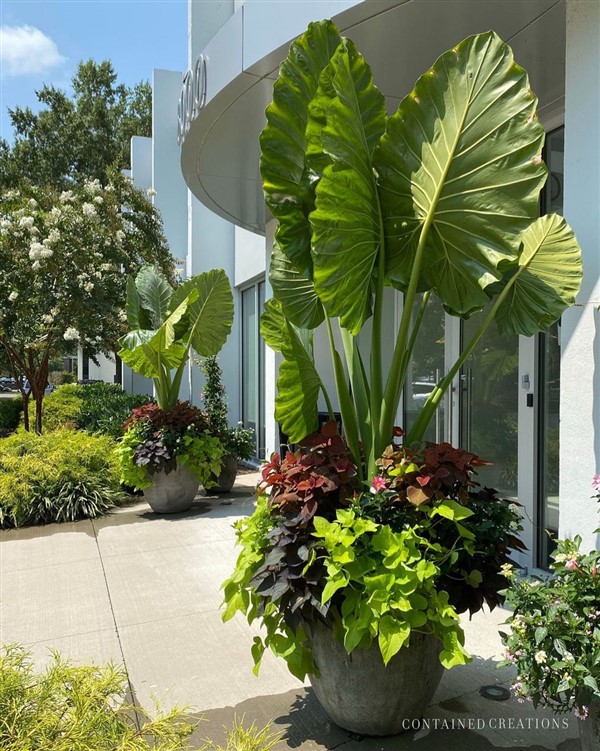 Patio and indoor containers work well with Alocasia. Patio and indoor containers work well with Alocasia. A 10′′ to 20′′ diameter (25-50 cm) container with a 10′′ (25 cm) depth is enough to start. Keep in mind that the looser the roots are, the higher and healthier your plant will become. When a plant’s growth slows due to root entanglement, it’s time to upgrade to a larger container.