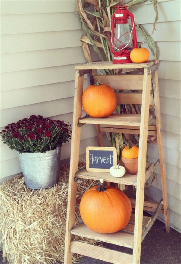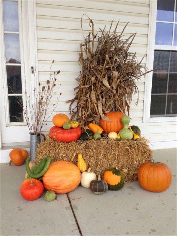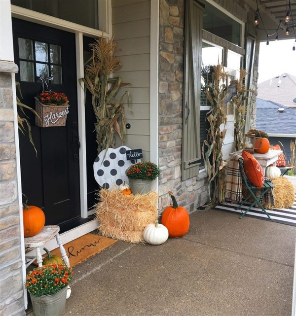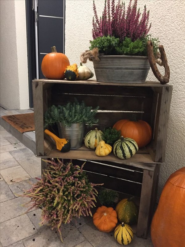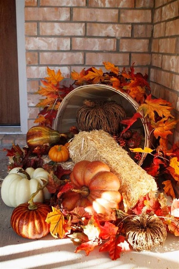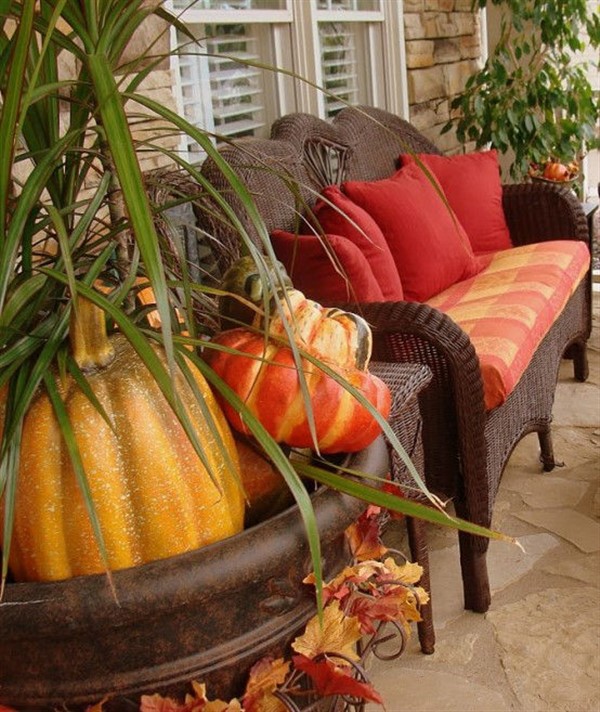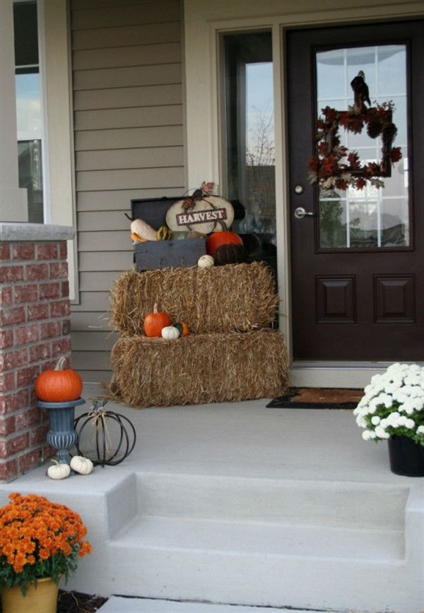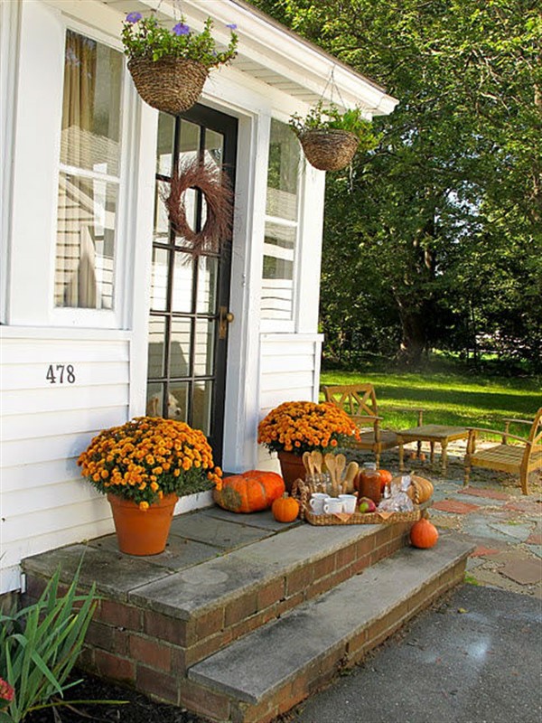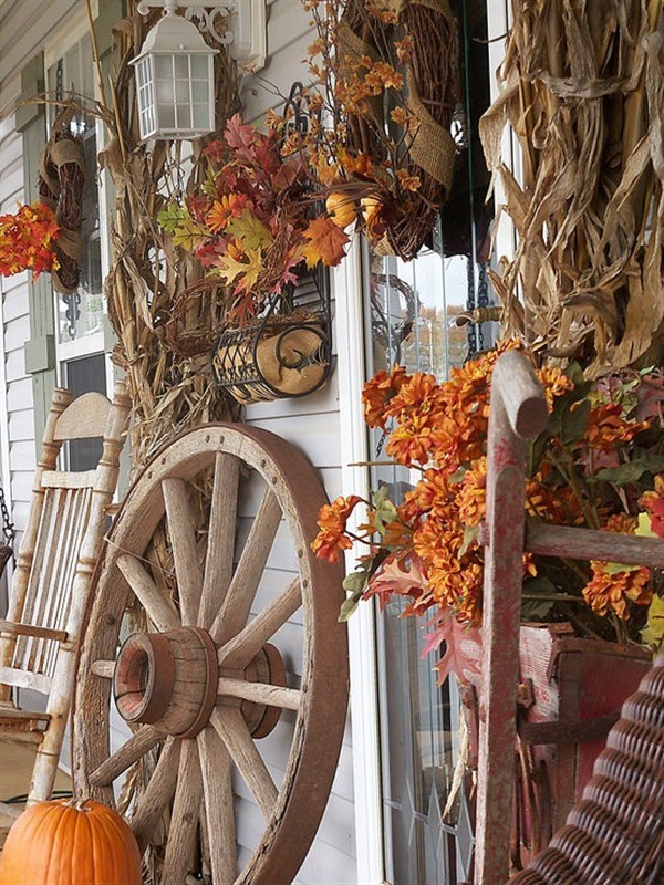 Moreover, fall decoration ideas not only beautify your porch but also you might decorate a corner of your sitting room. What is more, look at these pumpkins and sere flowers. What a lovely decoration 🙂