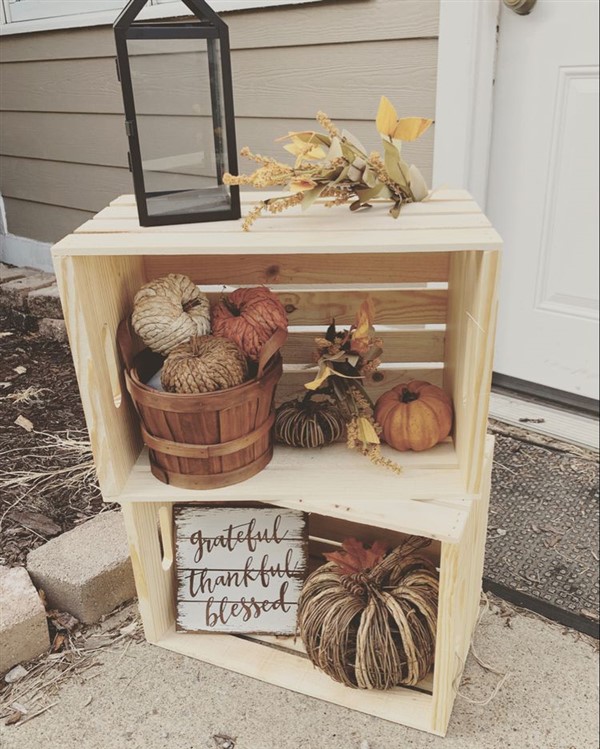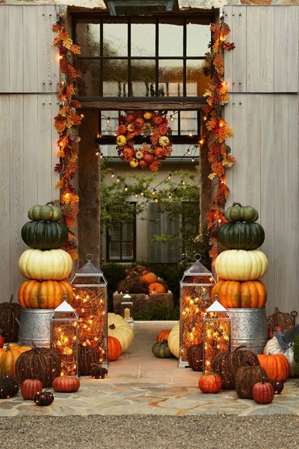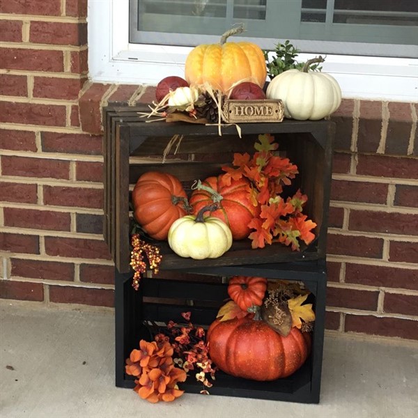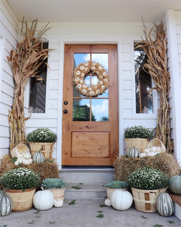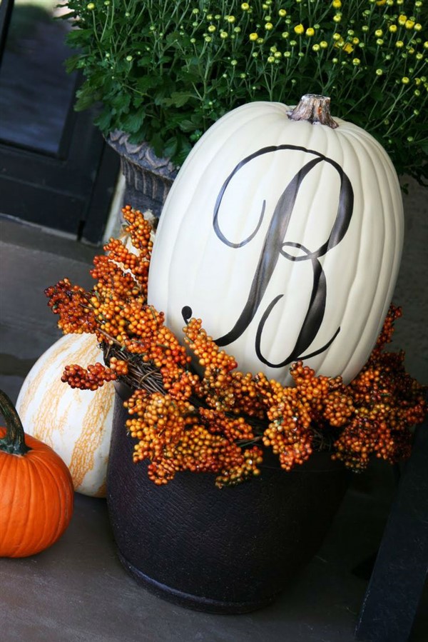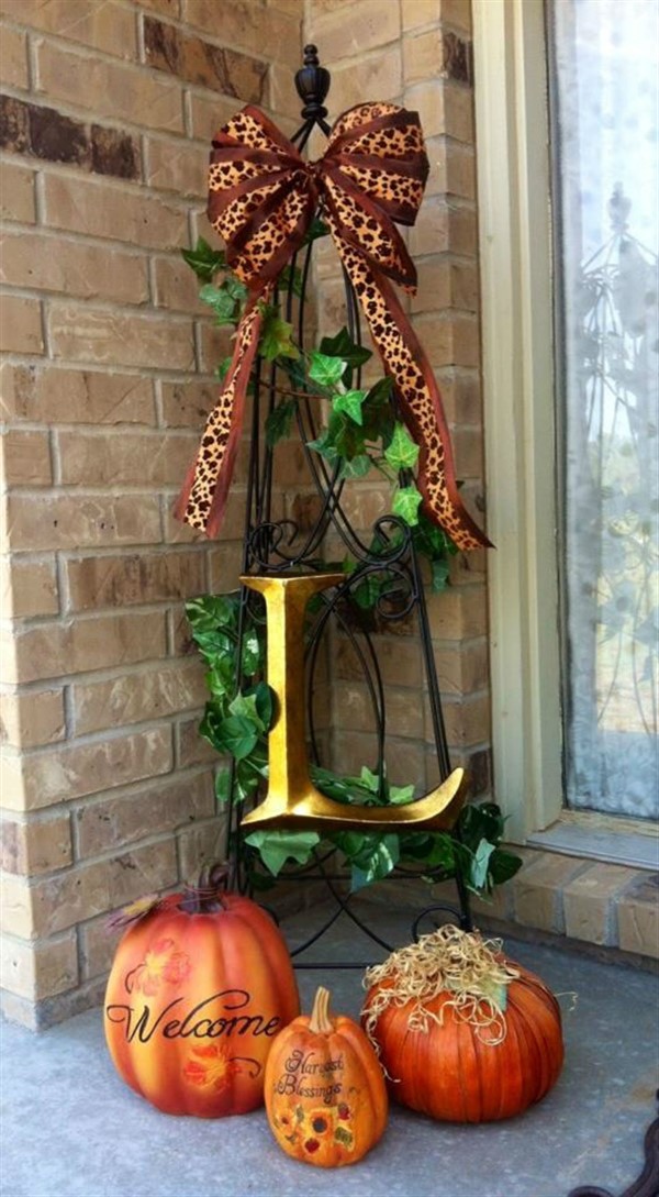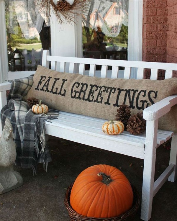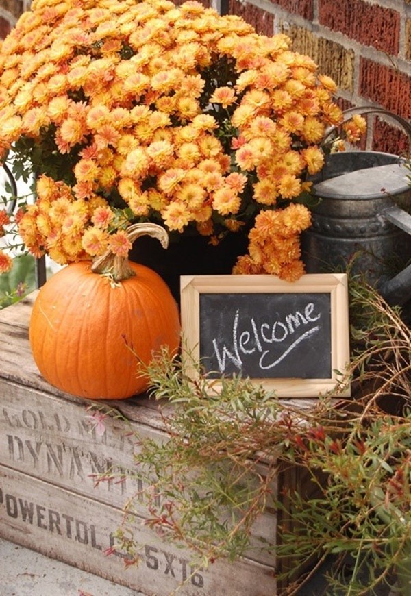 Moreover, fall decoration ideas not only beautify your porch but also you might decorate a corner of your sitting room. What is more, look at these pumpkins and sere flowers. What a lovely decoration 🙂